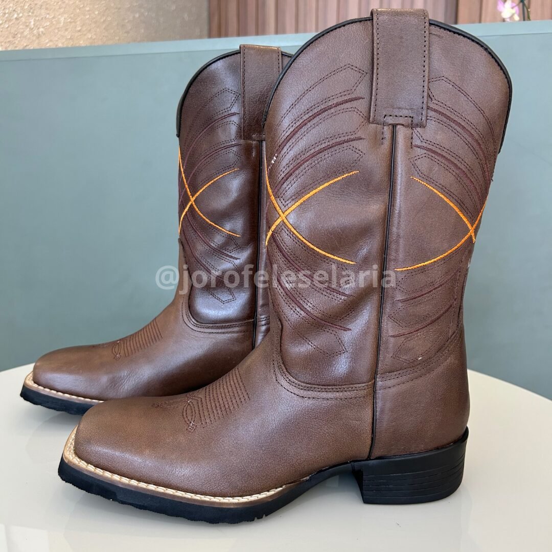 Bota Texana Masculina Café Bico Quadrado Cano Médio